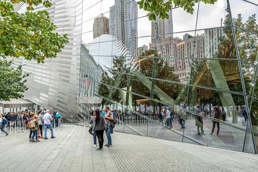 A tribute to the past and a place of hope for the future — the 9/11 Memorial Plaza is alive with twin spirits of remembrance & renewal. The 8-acre park is a supremely contemplative sanctuary, composed of a grove of nearly 400 white oak trees, and the largest manmade waterfalls in the United States. Set within the footprints of the original Twin Towers, each pool is approximately 1-acre in size. The names of every person who perished in the terror attacks of February 26, 1993 & September 11, 2001 are honored in bronze around the twin Memorial pools.